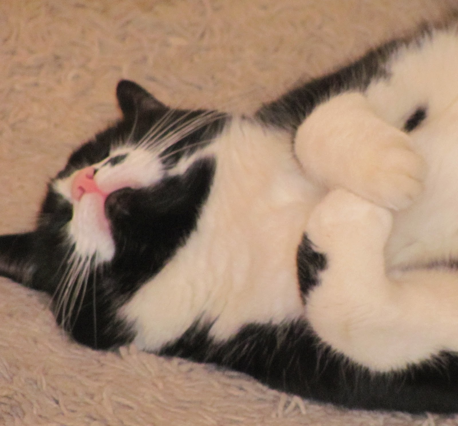 C'est Zarra, le chat de ma blonde, qui faisait la belle pour avoir des raviolis aux crevettes (tentative ratée).